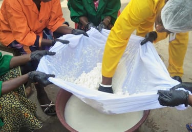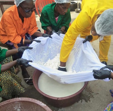 Nos programmes de formation en agro-transformation, spécialement conçus pour les femmes et les jeunes, visent à promouvoir l’autonomisation économique et le développement local. À travers des ateliers pratiques et des modules sur mesure, nous transmettons des compétences clés pour transformer le manioc et ses dérivés en produits à forte valeur ajoutée. Ces formations favorisent l’insertion professionnelle, renforcent l’indépendance financière et soutiennent les communautés locales dans une démarche durable et inclusive. Disponibles sur devis, nos programmes s’adaptent aux besoins des coopératives, ONG et projets RSE.