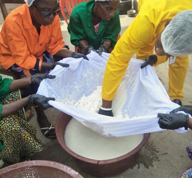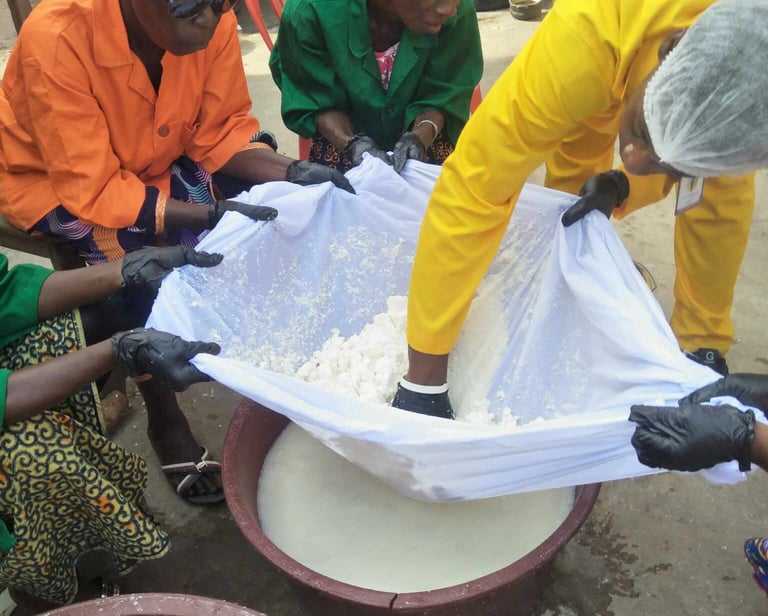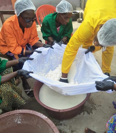 Nos programmes de formation en agro-transformation, spécialement conçus pour les femmes et les jeunes, visent à promouvoir l’autonomisation économique et le développement local. À travers des ateliers pratiques et des modules sur mesure, nous transmettons des compétences clés pour transformer le manioc et ses dérivés en produits à forte valeur ajoutée. Ces formations favorisent l’insertion professionnelle, renforcent l’indépendance financière et soutiennent les communautés locales dans une démarche durable et inclusive. Disponibles sur devis, nos programmes s’adaptent aux besoins des coopératives, ONG et projets RSE.